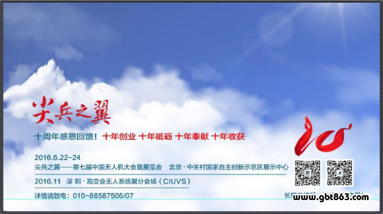 尖兵之翼——中国无人机大会暨展览会:我国无人机领域内举办最早、规模最大、学术水平最高、参与人数和参展企业最多的无人机专业盛会。 大会始于2006年,迄今已成功举办六届,集大会报告、学术交流、展览展示、商务洽谈、飞行表演、飞行竞技于一体,得到无人机业内外人士的广泛认可,成为业内公认的无人机会展第一品牌。