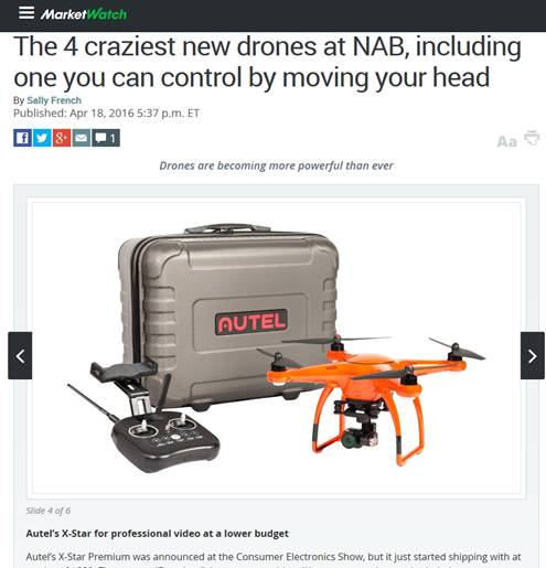 今年以来,“道通智能”陆续在美国拉斯维加斯、日本千叶、中国北京等地参展,获得各界的好评。美国的市场观察网站称:在2016年4月18日-21日全美广播电视展(National Association of Broadcasters Show)上,出现了四款最疯狂的新型无人机,其中之一便是道通的X-Star系列无人机。