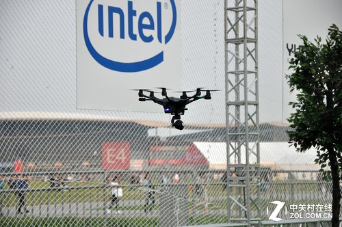 在本届CESA的场馆外,国内的昊翔科技直播展示了其无人机台风的避障功能,这项功能是基于intel的real sense tech(实时感知)设计,通过摄像头、超声波等传感器搜集环境数据,再经过intel CPU的实时处理,使得无人机能够感知周围环境的情况,并作出自主判断。在昊翔的演示过程中,台风 H无人机可以灵活穿越树林,并跟随骑行运动者进行拍摄。
