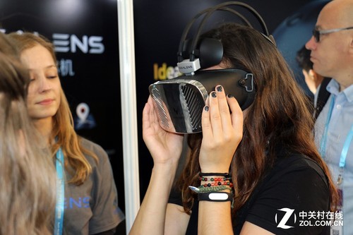 作为首批量产的VR一体机,IDEALENS已经经过多次美国盛大展会的洗礼,本次参展也带来了他们的第二代VR一体机。IDEALENS V2创造性的将电池移至了头部的后方,并以钢结构减压簧连接最轻主机,达到前后重量的平衡,大幅减轻颈部负担。此外,IDEALENS V2还具备超广的120°FOV,低余晖双AMOLED屏幕,90Hz刷新率,17ms延时、1mm级别精确大范围的位置追踪等彪悍性能。
