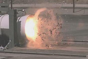 美国SRB固体助推器测试瞬间,该型助推器是目前世界上推力最强的固体燃料助推器
