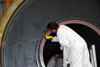 正在检查O型密封圈的技术人员,当年的“挑战者”号航天飞机就是由于这一部分在寒冷中失去应有的保护作用而导致大爆炸