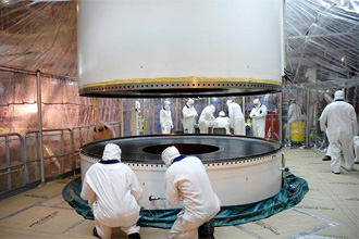 美国SRB火箭助推器分段组合现场,可见组合现场做了无尘处理,这种对接需要极为小心仔细,且每一步都要进行探伤,以免发动机空中爆炸