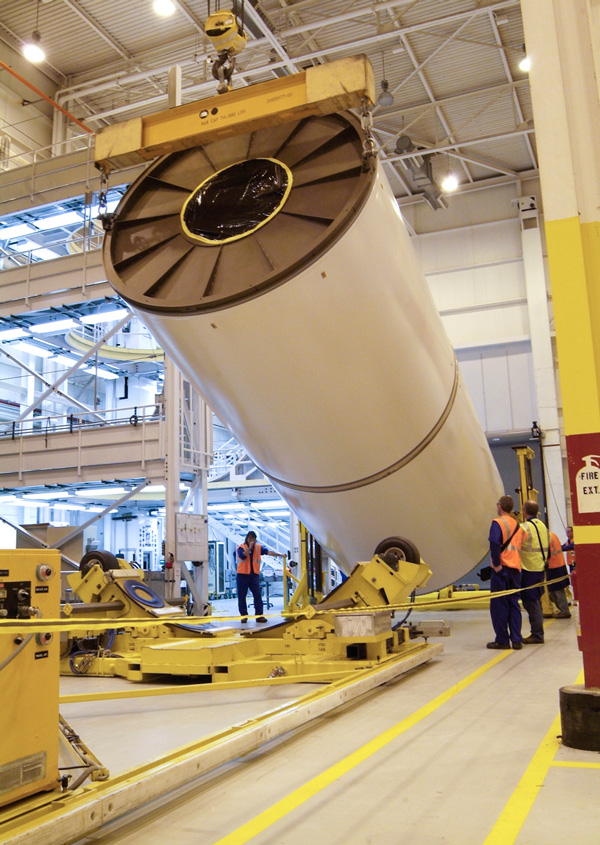 打个比方,固体助推器就相当于把一串爆竹连在一起,要求它们缓慢燃烧,既不能集中爆炸,也不能分别噼里啪啦的爆炸,难度可想而知,图为ATK公司制造SRB火箭分段的车间