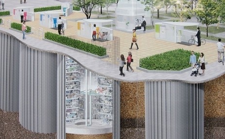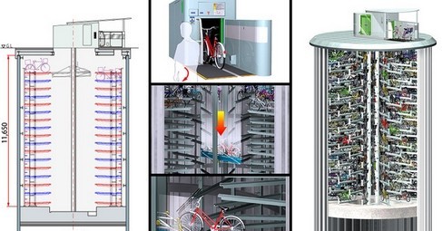 上面介绍的是DHL机场的雏形,较成熟的商业运营的无人机物流系统不会以单机方式运行,必然是无人机集群运营,那么集群机场呢,考虑到那些著名无人机公司还忙于造鸡,还没想到给鸡弄个窝,素材难找,只得先借用集中自动停车场,麻烦大家把自行车想象成无人机吧!