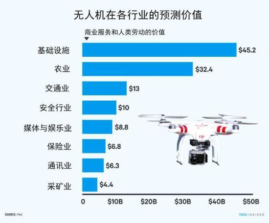 据普华永道发布的最新研究报告称,无人机将取代价值1270亿美元的人类劳动和服务,涉及到众多的行业。