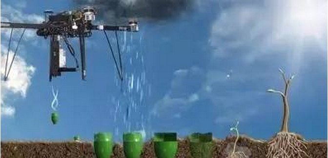 2015年,一家英国的新创企业设计了一款无人机,这款无人机可以将一种特殊的种子胶囊播撒进土壤之中。在实际操作过程中,种子胶囊将像子弹一样被射入土壤之中,它们不但将牢牢固定于土壤,同时胶囊还将破裂,种子因此可以接受阳光的照耀,随后不断生长。