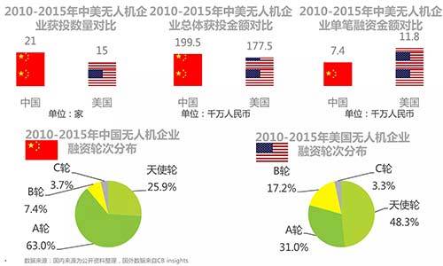 中国无人机企业融资阶段以A轮为主,美国则是天使居多。