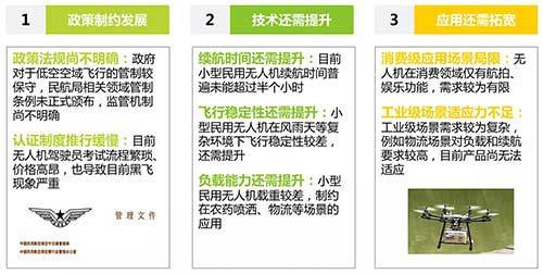 目前政策、技术和应用场景的局限制约了无人机的发展。