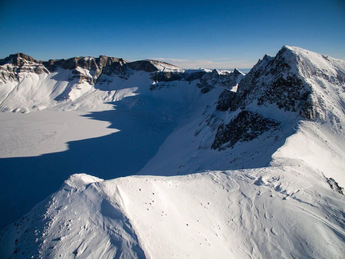 再多说一些关于起飞的技巧。我不希望为任何人手指受伤而负责,所以我还是更仔细地解释一下整个过程为好。我之所以在无人机起飞时握住它,是为了防止因为强风而翻转。但是你应该明白,螺旋桨叶片会严重损伤你的手,所以这一切一定要非常仔细地进行,而最重要的是你要知道你的放在那儿仅仅是为了防止无人机翻转。如果翻转了,你能准确地阻止这一情况发生,把它扶正,然后当它一旦升空,就松开手。顺便说一句,这么做时我都戴着厚的手套。如果不戴手套,我不认为这么做是个好主意。但实际上这一切都取决于你多想拍到这张照片。我记得大约半年前我甚至在雨中飞行无人机,我明白最终我可能要以买一台新的无人机收场,但是那次拍摄值得这么做,所以我打算放手一搏。我喜欢这张照片中那些高低不平的山脉阴影,它是在靠近北朝鲜的区域拍到的。事实证明,我当时飞得很靠近边境,封面照片上的湖泊事实上分隔开了两个国家。当地人告诉我,许多遥控的飞行设备飞向湖泊却再也没飞回来。所以我决定情愿离山更接近一些,相对更安全。