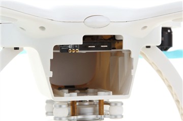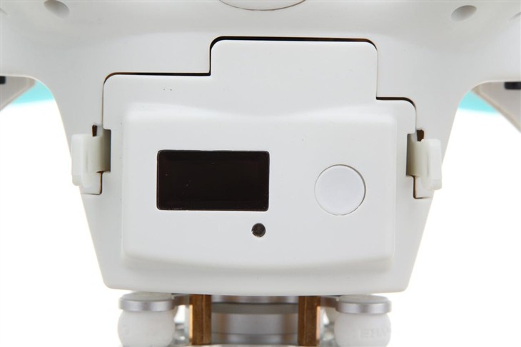 首先我们来看看包装盒中都有什么,其中最显眼的就是这个飞行器主体(四个扇叶是我们后期安装上去的),在飞行器的机身上也配有飞行灯(前面两个为红色,红色闪烁代表未解锁,常亮代表已解锁;后面两个为蓝色等,闪烁代表GPS不稳定,常亮后代表可以飞行),而在下方我们也能看到那个比较专业的三轴云台和他们自家生产的GHOSTDRONE二代摄像机。