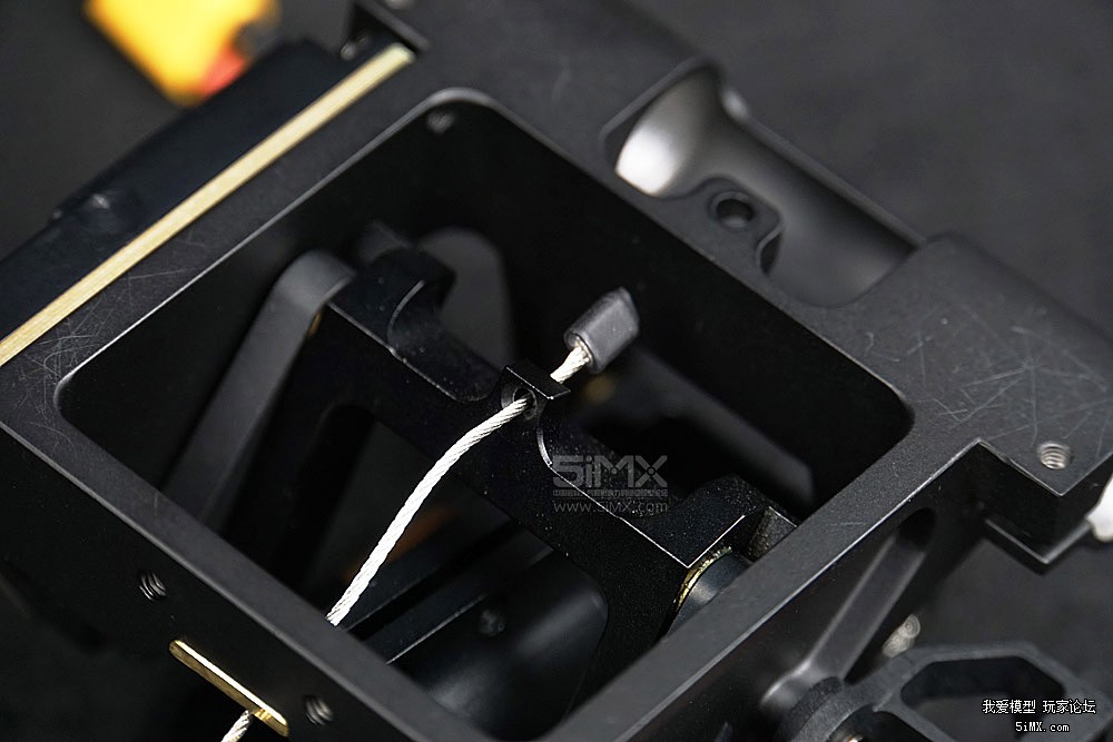 牵引钢丝的特写,易磨损位子还用了金属垫片。