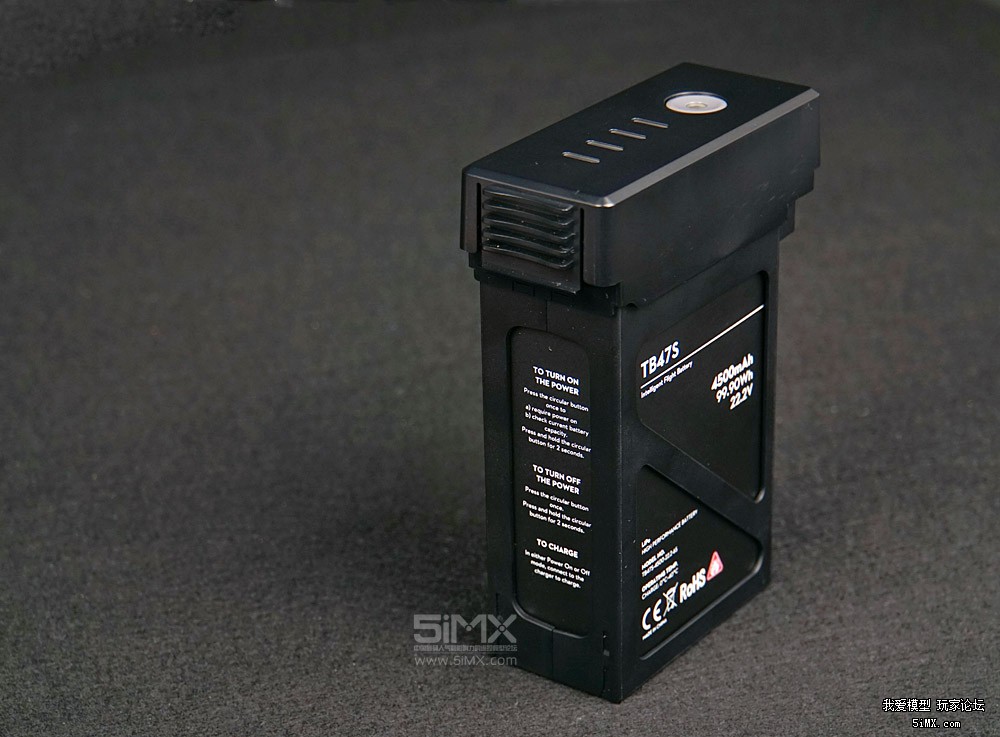 电池的容量99.9Wh,22.2V 4500mAh,与悟的电池一模一样。设计考虑是为了带上飞机,因为民航规定个人携带锂电池容量不得超过100Wh。