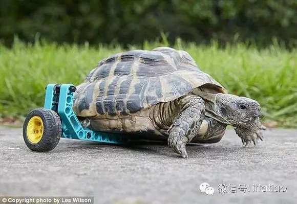 【小乌龟后腿惨被削断 乐高积木成完美假肢】为失去行动能力的动物装轮椅,大家应该都不陌生吧? 英国赫里福德就有一只乌龟,左后腿被割草机伤了,主人为他装了一个用乐高构成的假肢,简直再合适不过。 据每日邮报报道,这只乌龟名叫杰克,主人清理后园时,割草机锋利的刀片把壳削去一部分,后腿也削了一个大口子,主人立即带它去医院缝合,但最终仍未摆脱截止的后果。愧疚之余,主人向在捷豹路虎的工程师哥哥请教,成功用乐高搭建了一个假肢,没想到第二天就小乌龟就在地板上乱窜了,看起来对新腿非常满意。