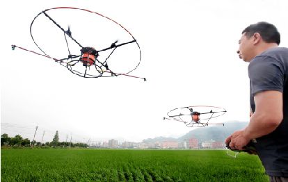 “经过我们的试验,在满载的情况下,无人机每组电池可续航7分钟左右,能喷洒12亩地,一个工作日每台喷洒面积能达300—400亩。”植保无人机操作员黄益通说。