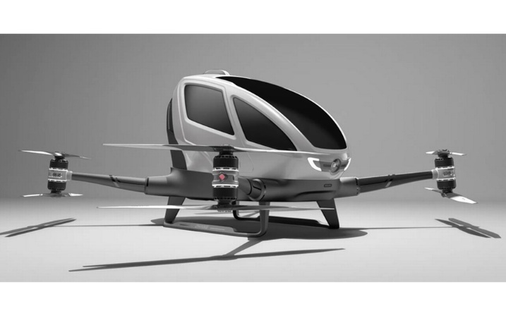 亿航184是一款新的电动四轴无人机,它很大,可以搭载一名乘客,还可以携带行李,适合短程飞行。无人机可以垂直起降,最高飞行高度1500英尺(约457米),可以用每小时62英里(约100公里)的速度飞行23分钟。184目前还在测试,亿航说产品肯定会上市。