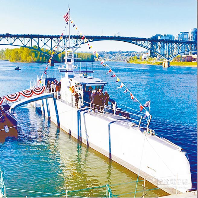 美军反潜水上无人艇「海猎号」举行下水仪式。(取自环球网)