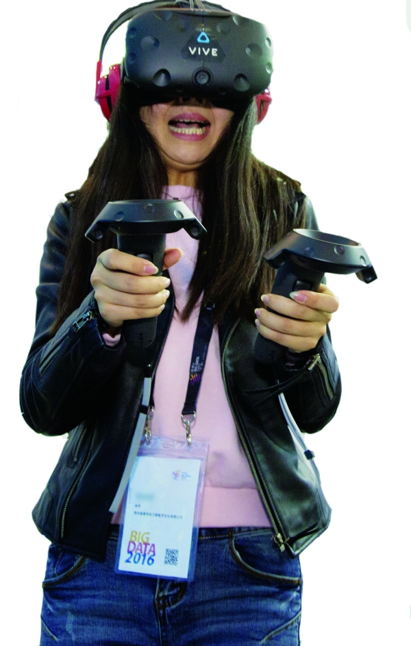 VR体验效果逼真,女士吓得尖叫 黄震 摄