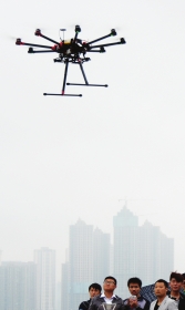 而随后进行的特技飞行表演和对抗也主要由航模队分两组进行。11点20分左右,扮成“敌方”的2架战机从空中呼啸而至,扮成守方的4架战机几乎同时升空拦截,6架战机在空中相互追逐尾随,令人眼花缭乱,而中科大智随后升空的八轴无人机和单旋翼直升机则充当岸基保护力量。