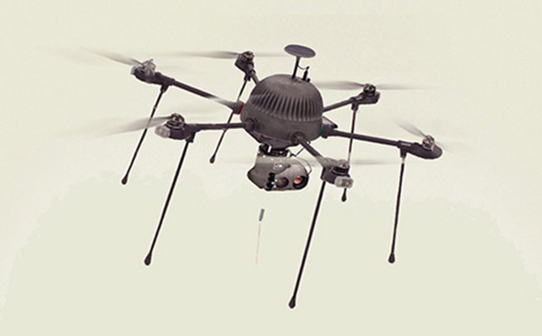 (二)今年11月,波士顿无人机制造商CyPhy Works利用“绳系”的方式研发出了一款永远不用着陆的无人机Parc。该无人机采用六旋翼,搭载了高分辨率红外相机,可以在夜间进行拍摄,其下方由“微丝”连接,不仅可以时刻和外界保持数据传输(数据传输速率为10Mbps),还可以源源不断地从外部发电机、车辆、或者其他设备获得电力。当然这种“绳系”结构也有一个明显的弊端,即无人机无法飞的太远。