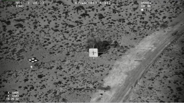 AR-1导弹准确命中戈壁滩上的靶标。