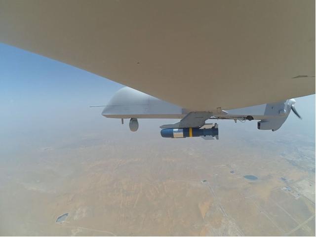 CH-4无人机卫通中继数据链系统使用Ku频段中继卫星,卫通地面站配备6.2米口径抛物面天线,卫通机载设备配备0.7×0.6米口径抛物面天线,返向链路数据传输速率最高可达4Mbps。本次试验为CH-4无人机系统首次进行卫通靶试试验,视距地面站控制无人机的起飞和降落,卫通地面站在任务阶段通过卫星中继数据链控制无人机进行武器靶试试验,在真正意义上实现了CH-4无人机系统超视距测控与信息传输。