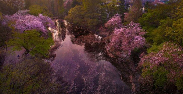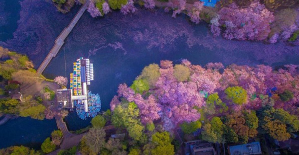 与别人不同的是,Dungo会别出心裁地使用无人机拍摄这些樱花。而从鸟瞰的视角望去,东京的樱花简直让人美到窒息。