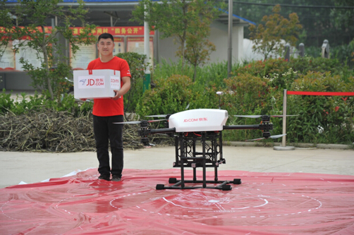 2016年6月8日,京东在中国宿迁正式开展无人机试运营。随着无人机从宿迁双河站配送中心将数个订单的货物送至宿迁曹集乡旱闸的乡村推广员刘根喜手中,京东无人机配送首单顺利完成,京东无人机项目又迈出了坚实的一步,也标志着京东智慧物流体系的建设实现了一次重要落地。