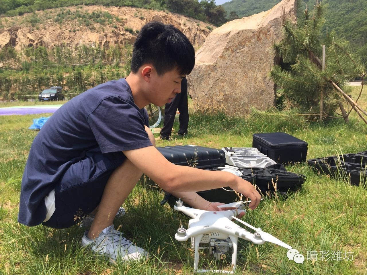 6月9日上午十点,参赛选手谭翔早早就来到了首届潍坊无人机航拍大赛的比赛地点,国家森林公园竹山。因为不同的环境对无人机的操作有着不同的要求,所以比赛前要做相应的试飞,通过试飞,谭翔对比赛现场的环境还比较满意。