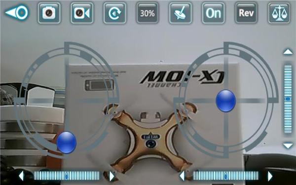 cx-10w支持手柄和手机APP两种操控模式,通过扫描说明书中的二维码或者从应用市场下载安装【CX-10WiFi】均可。提醒一下,该软件界面文字均为英文,不过,对玩家来说,保持默认即可。