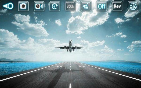 连接无人机的WiFi信号后,手机APP界面会变成实时界面,从这个界面,我们可以看到无人机飞行时所拍摄到的实时画面,通过顶部任务栏中的各项功能,我们可以一一尝试。其中比较重要的就是拍照功能和视频录制功能。
