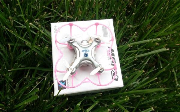 笔者拿到的是内测版,包装和内容物并不是最终版本,最终版本应该还有备用风叶和护翼(粉色防护圈是笔者自己配的)。目前包装盒里为4cm无人机一只,充电线一根,说明书一份。