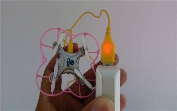 cx-10w的充电线还是带指示灯的哦,可以插电脑usb口充电,也可以直接插移动电源充电,如果在户外玩,带着移动电源就可以,cx-10w充电大约半个小时,可以连续飞行5-10分钟。