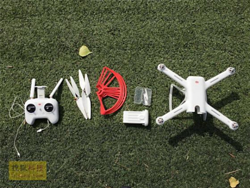 这是小米无人机的全家福。其中包括因为是在室外实飞时拍摄,因此图中不包括小米无人机的充电器。