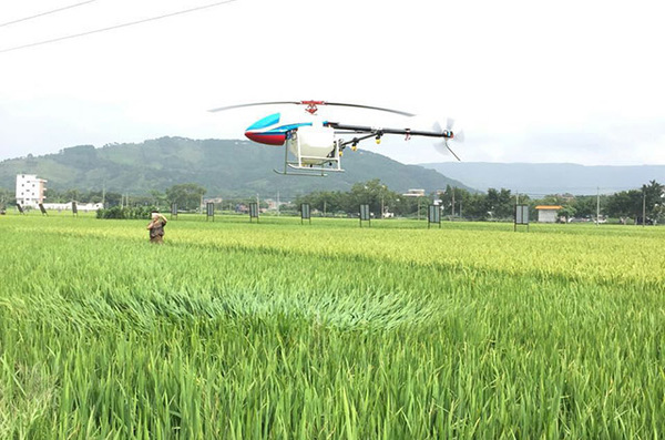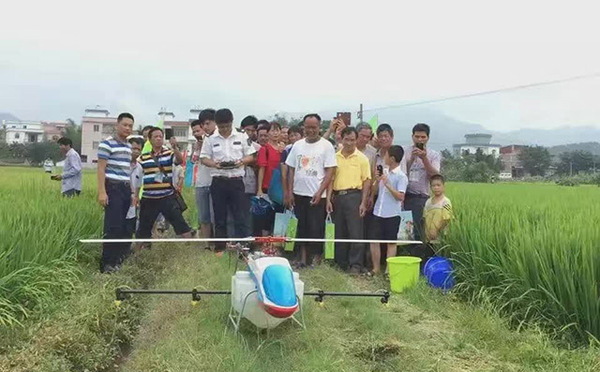 向燕青介绍,天鹰兄弟787单旋翼植保无人机,一次可携带17升高浓度药水,完成25-30亩水稻施药,可广泛用于农作物、林木等的农药喷洒作业,每分钟就能完成1-2亩农作物的施药,使用无人机对农作物进行统防统治,对提高劳动效率和食品安全水平,保护农业生态环境,加快农业机械化发展发挥了重要作用,特别是目前农村青壮年劳动力缺乏的情况下,运用新型先进的防治方法显得尤其重要。