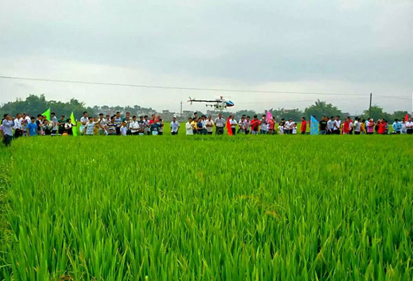 6月10日,由广西隆华生态工程股份有限公司主办,深圳天鹰兄弟无人机创新有限公司合作,在广西贵港市桂平市蒙圩镇举办了桂平市水稻病虫害专业防治无人机精准施药技术现场观摩会。市农机局卢局长出席现场会,农业主管部门、植保部门相关领导、各乡镇农业技术推广站、种植合作社、家庭农场、种植大户、农资经销商共200人参加了现场观摩会。