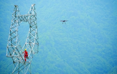 微型无人机可以飞越崇山峻岭,穿越树林和水域,自如地牵引电线。使用微型无人机不仅避免人工开辟施工通道,节省了施工费用,还保护了线路走道下植被,最大限度保护生态环境。