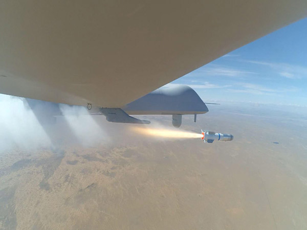 彩虹-4无人机搭载高清载荷传回的导弹击中目标瞬间图像。