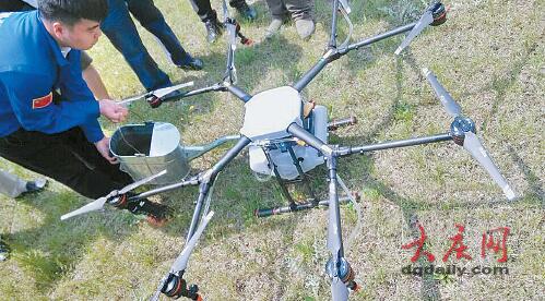 大庆市现有灭蚊设备比如车载喷雾设备、人工背扶式喷雾设备等,它们比较适用于开阔的草地、低矮树丛等地的蚊虫防控。而对于较高的树林、湖泊周边及一些障碍物较多场所来说,防控起来就较为困难,因此,会议结束后,市城管委组织与会人员在九号院东侧绿地上,现场观看了“无人机”药物喷洒演示。