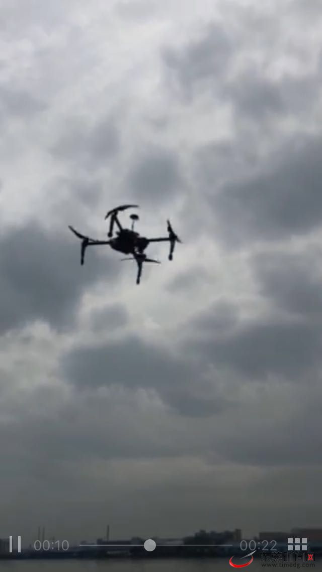 12分钟后,无人机再次出现在了大家的视野中。完成任务归航,无人机又稳稳地降落在江边的路面上。