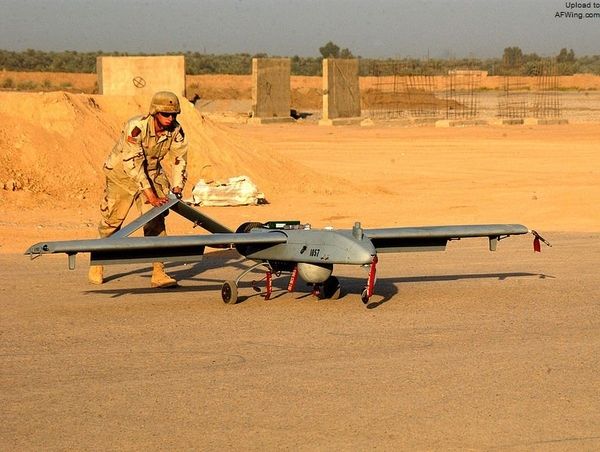 MQ-1 捕食者(Predator)被美国空军描述为“中海拔、长时程”(MALE)无人机系统。它可以扮演侦察角色,可发射两枚AGM-114地狱火飞弹。它是一种遥控飞行器,机长8.27米,翼展14.87米,最大活动半径3700公里,最大飞行时速240公里,在目标上空留空时间24小时,最大续航时间60小时。该机装有光电/红外侦察设备、GPS导航设备和具有全天候侦察能力的合成孔径雷达,在4000公尺高处分辨率 为0.3米,对目标定位精度0.25米。可采用软式着陆或降落伞紧急回收。
