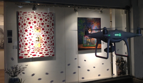 2016年6月18日,“韩北石艺术@中国贝娃十周年特展”在上海知美居画廊(CharmyArt Gallery)开幕。除到场的新老朋友及嘉宾外,知美居画廊还迎来了一位神秘嘉宾:无人飞机航拍器,其就像一只美丽的艺术蝴蝶飞舞在画廊里,神秘地采集记录下精彩的展览视频镜头。品质大气又不失时代感使命感的艺术作品,与这一新科技的时尚结合,为这场艺术展增添了无比美幻的视觉盛宴。