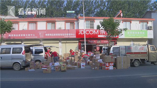 6月18日,是京东一年中最大的促销日,早上6点多,在位于江苏宿迁的双河配送站里,货物已经陆续送达,所有的配送员们正忙着分拣、装货。