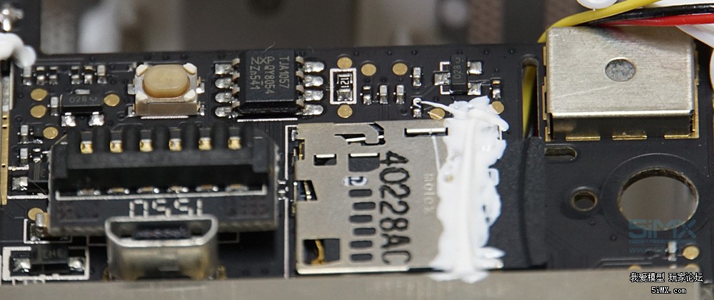 飞行器黑匣子的内存卡、云台的连接口和TJA1057(CAN收发器)。