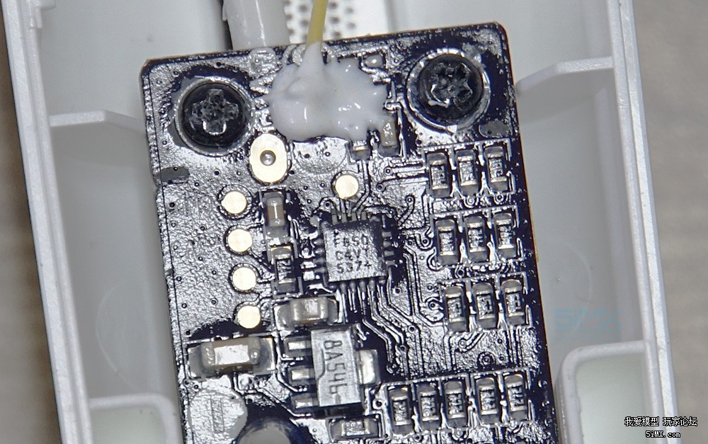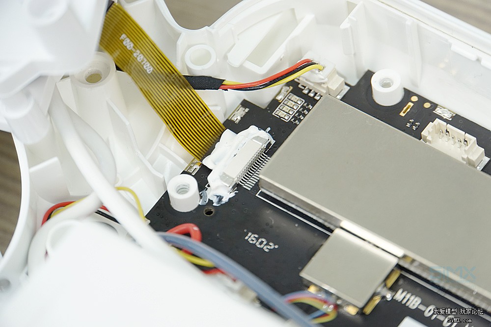 小米无人机的内部线头都有卡扣,为了牢靠还用密封胶粘连。