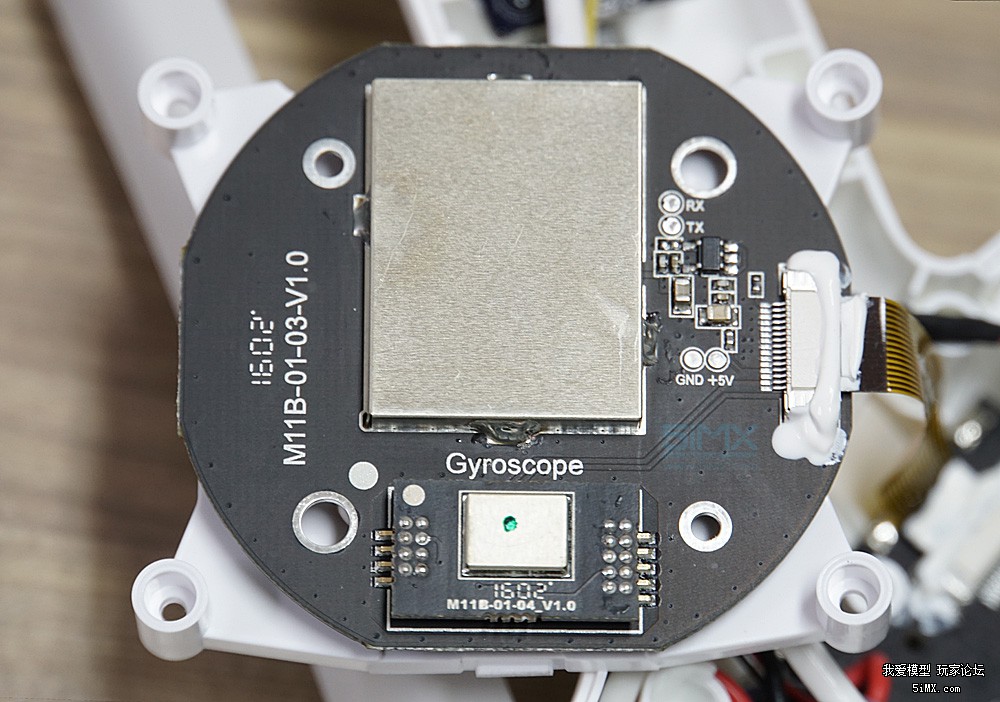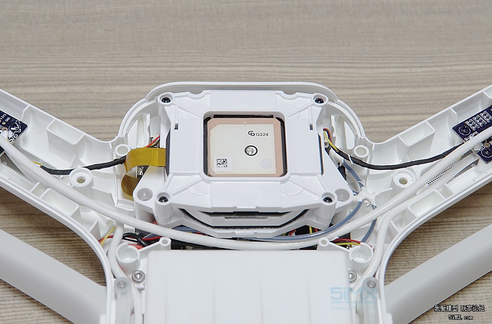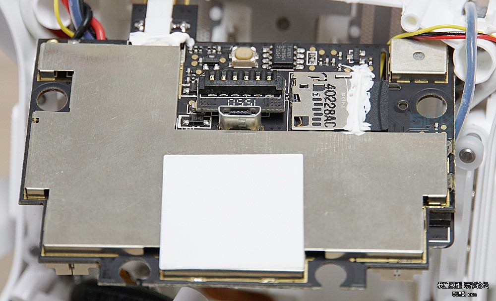 小米无人机的飞控模块位于GPS芯片的下面,依然被很好地保护着。
