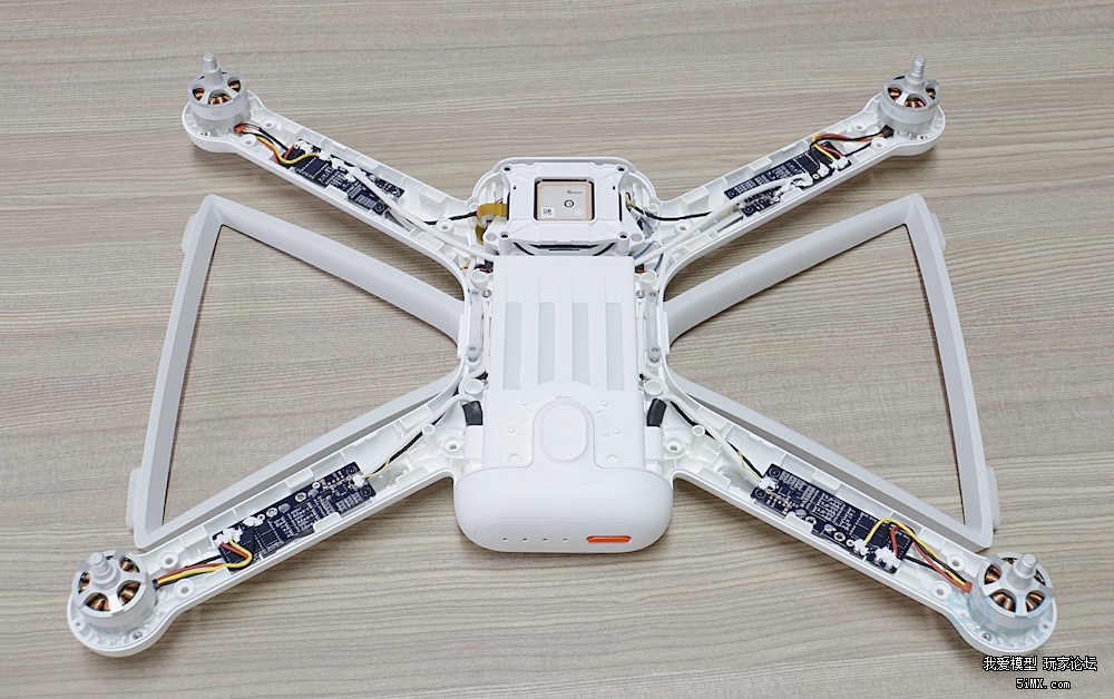 小米无人机的电调安装在四个机臂当中,为了给电调散热,在机臂上下位置都设计了散热孔,如果下雨,雨水可能会顺着散热孔漏下去,这是非常危险的。