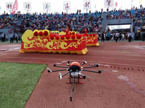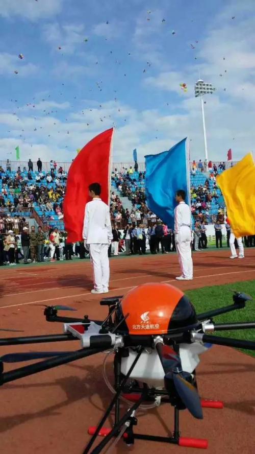 参与此次空中飞行表演的无人机是由天途航空自主研发生产的天途八旋翼无人机植保机,可一次装载10公斤农药,每小时作业面积最高可达100亩左右,不仅解决了以往农作物防治下田难的问题,而且具有高效、快捷、雾化程度高、省工、省时、成本低、节水省药、不受地理条件限制、重量轻易携带等特点,其喷洒效率是传统人工的30倍,大大提高了药物防治效果,是推进农业生产全程机械化生产的重要措施。
