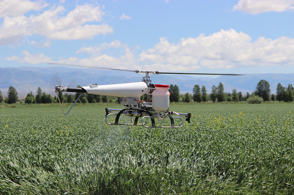 6月20日中午,在哈密巴里坤县大河镇三村四组的1000多亩小麦田上,2架无人机一字排开,随着指挥员的“发动”指令,2架飞机同时发出轰鸣腾空而起,随着现场2名“飞行员”通过手中遥控器发出指令,无人机在麦田上呈现出各类姿态。该试验由哈密地区农技开发中心、巴里坤县农技中心、昊一航空公司及当地农业种植专业合作社联合举办。