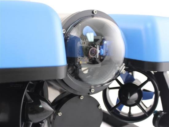 用户可通过机载摄像头拍摄SD/HD(1080p/30 fps) 视频,视频的延迟只有200毫秒。此外,内置LED射灯有助于其在深海进行探索。